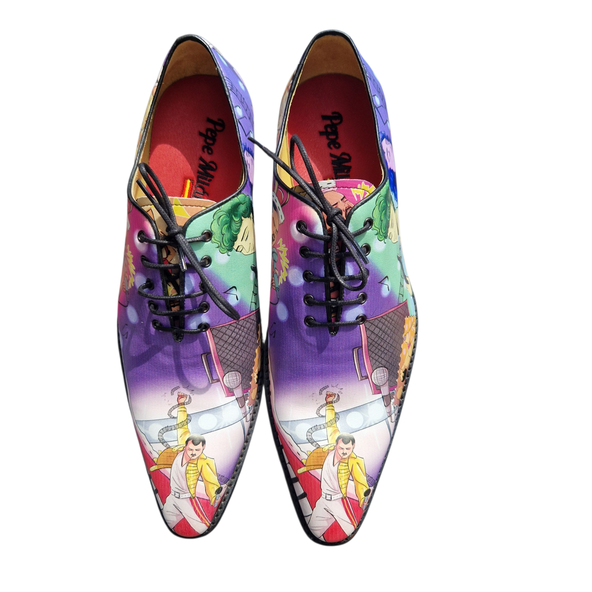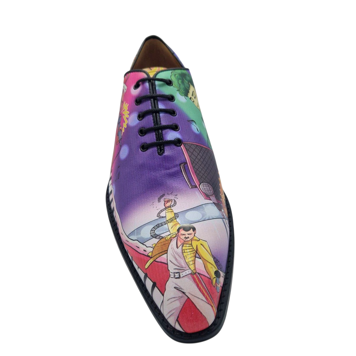 Door kunstenares Joellé ontworpen schoenen van de legendarische popgroep QUEEN.